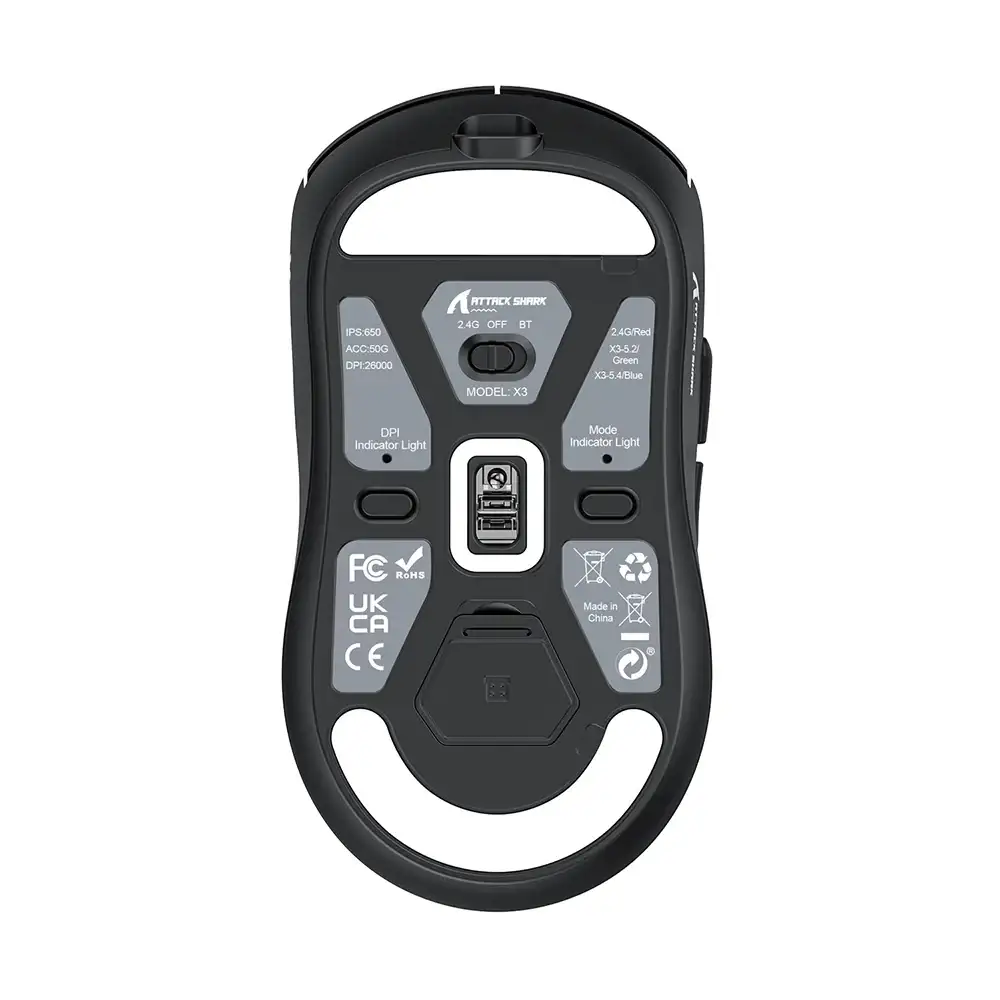 Attack Shark X3 Pro Mouse farklı kullanım senaryolarında da en iyi seçenektir. Çünkü X3 Pro hem kablolu USB-C, 2.4GHz ve farenin arkasındaki düğme aracılığıyla kolayca değiştirilebilen Bluetooth modu olmak üzere üç farklı bağlantı modu sağlayan bir BK3633 çipi ile donatılmıştır.