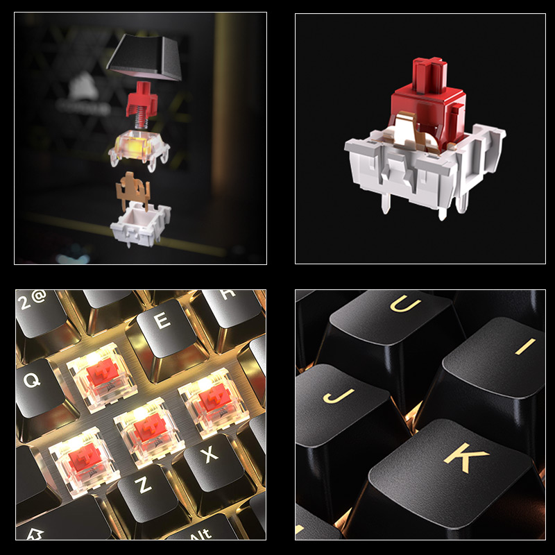 1 - MLX RED v2: CORSAIR MLX Red v2 doğrusal anahtarlar önceden yağlandığı için sürtünme olmadan pürüzsüz tuş vuruşlarının keyfini çıkarabilirsiniz.