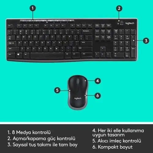 Logitech MK270 920-004525 Kablosuz Klavye Mouse Seti