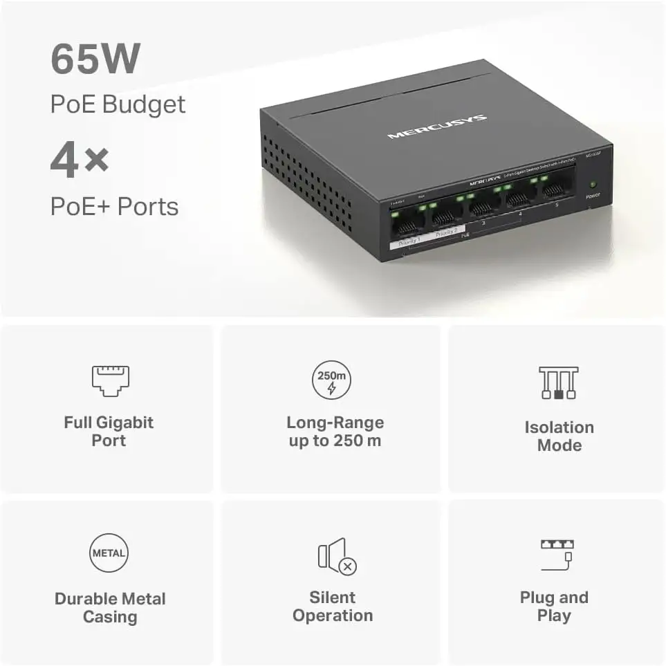 MERCUSYS MS105GP 5 PORT 10/100/1000 POE SWITCH