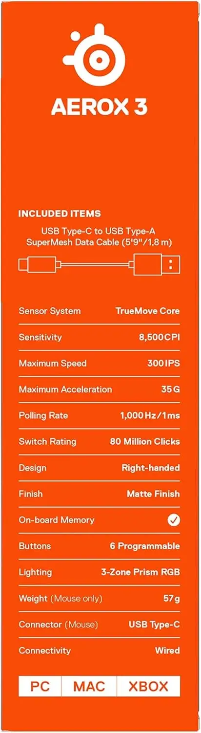 Hızlı hareketler ve geniş alanda kaydırmalar önemli olduğunda, Aerox 3'ün hafif tasarımı oyunda daha kısa sürede ve daha isabetli tepkiler verebilmenizi sağlar.