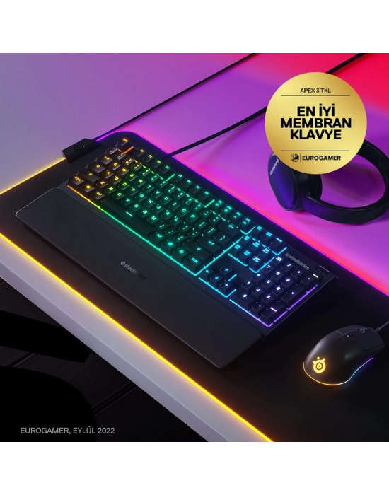 Steelseries Apex 3 Gaming Klavye, 10 Bölgeli Rgb Aydınlatma, Sessiz Switch, Ip32 Sıvı Dayanıklılık, Premium Manyetik Bilek Desteği, Türkçe Qwerty
