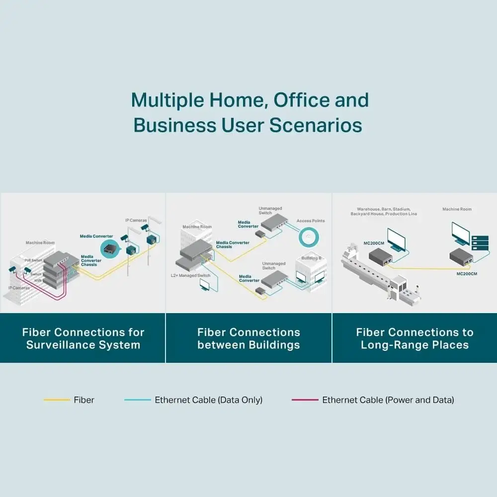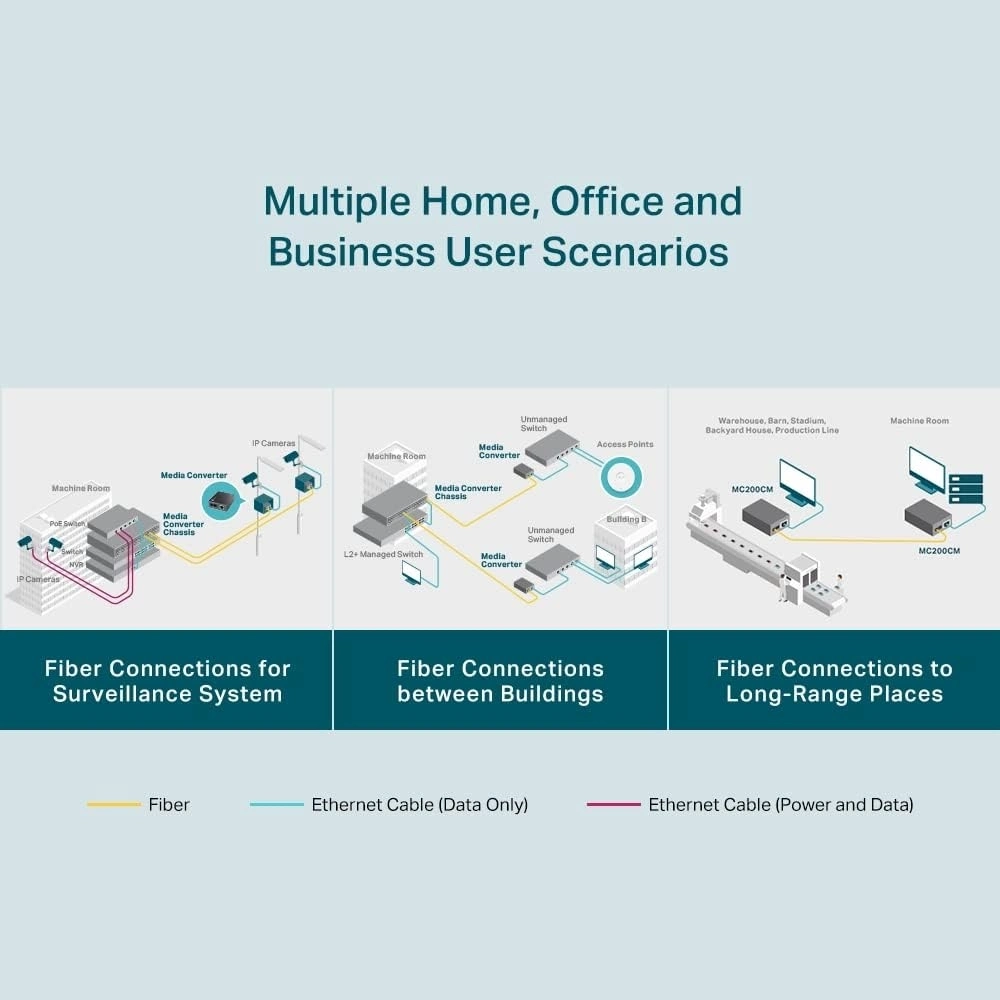 Bu modülün diğer özellikleri arasında bağımsız bir cihaz olarak (kasa gerektirmez) veya TP-Link'in TL-MC1400 kasasıyla, TX portu için Otomatik MDI / MDI-X ve ön panel durum LED'leriyle kullanılabilme özelliği bulunmaktadır. MC200CM, çok modlu fiber kullanarak 0,55 kilometreye kadar genişletilmiş fiber optik mesafelerde iletim yapacaktır.